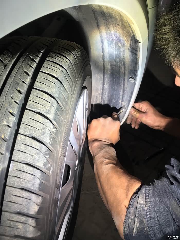 正在拆前杠。在这里我要说明一下,咱们的凯越如果只是更换普通灯泡的话问题不大,直接就可以换,但是不知道你们发现没有,凯越的机舱里面留给大灯总成的后部空间特别小,尤其是右边有电瓶的地方,因为这款LED大灯是有灯带散热的,下不去手,所以必须拆前杠把大灯总成拿下来安装。