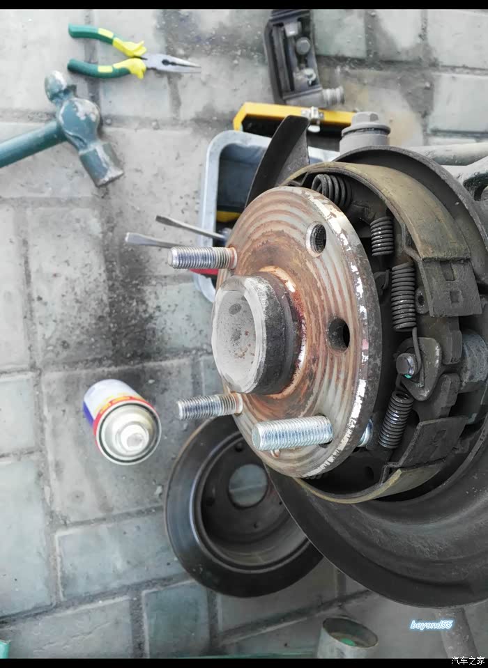 去给爱车做轮胎换位,前后倒一下,但是呢右侧后轮有一颗法兰上的螺杆(就是安装轮胎和螺丝紧固的那个杆)拧不下来,我就知道肯定要给拧断了,师傅叫我踩住刹车,用力拧断了,这下就剩下三颗紧固轮胎的螺丝了,我叫朋友的修理厂给我备一颗螺丝去换,没想到,,,没想到,,,要准备换的时候,,,又拧断一颗,,这下尴尬了,等配件呗,,,,