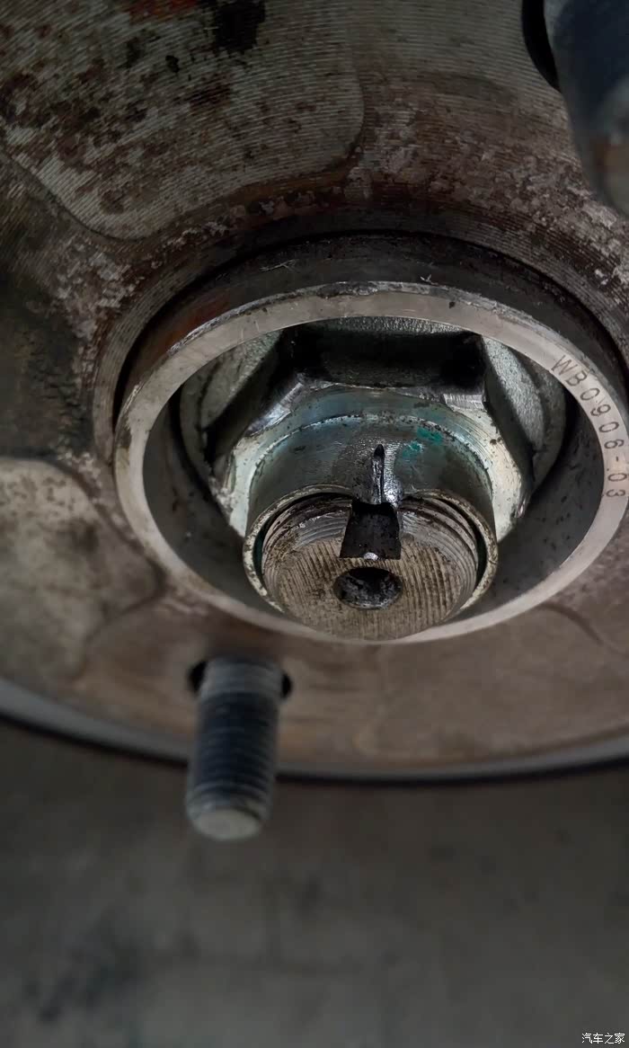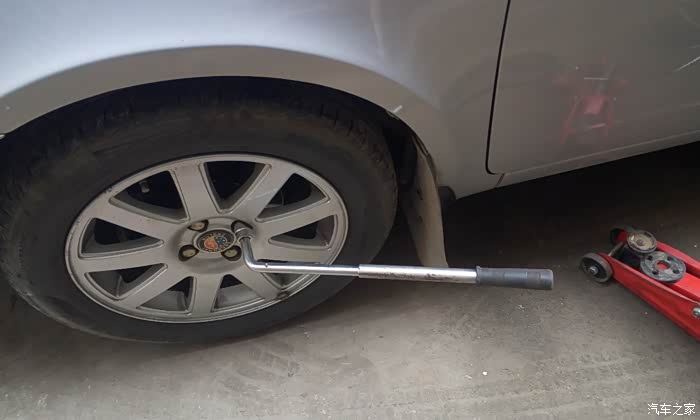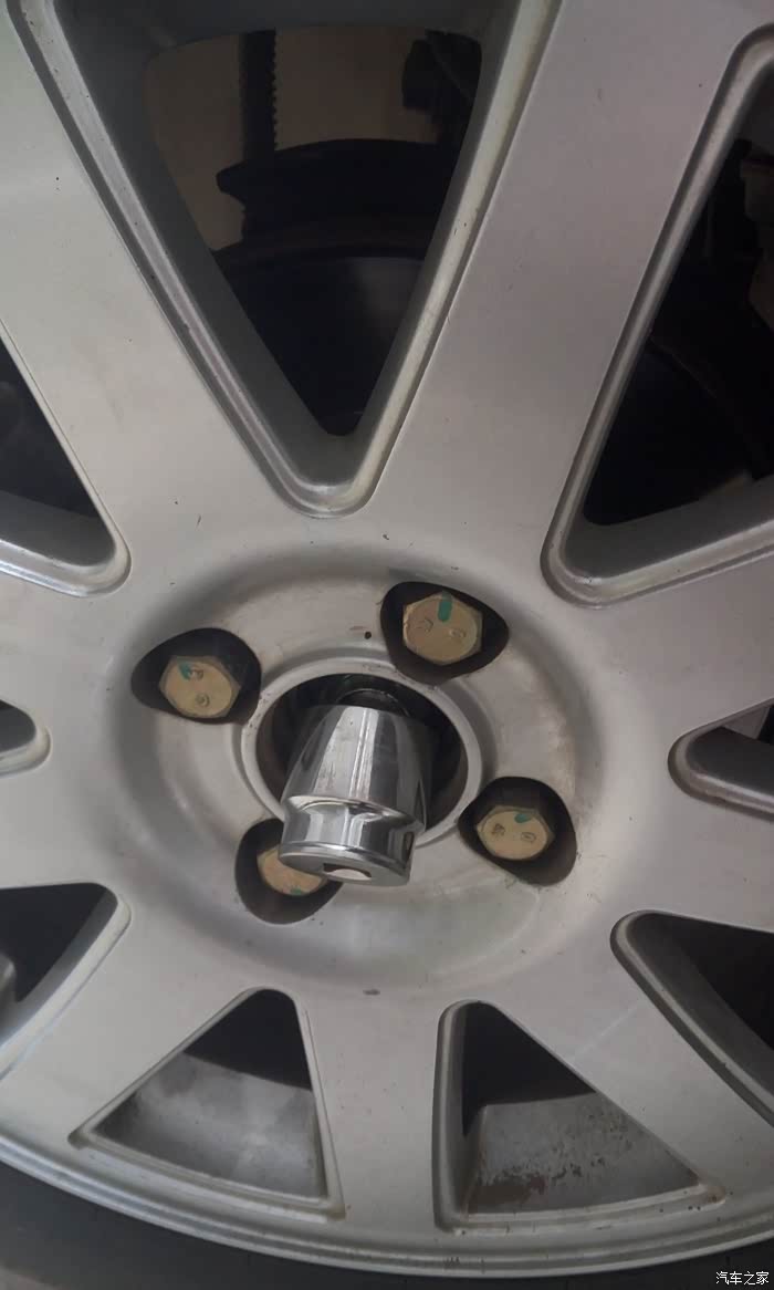 松轮毂螺丝然后将车顶起来拆下轮胎,用锤把从轮毂内侧将轮毂中心盖顶下来,以备接下来拆球笼头螺帽。