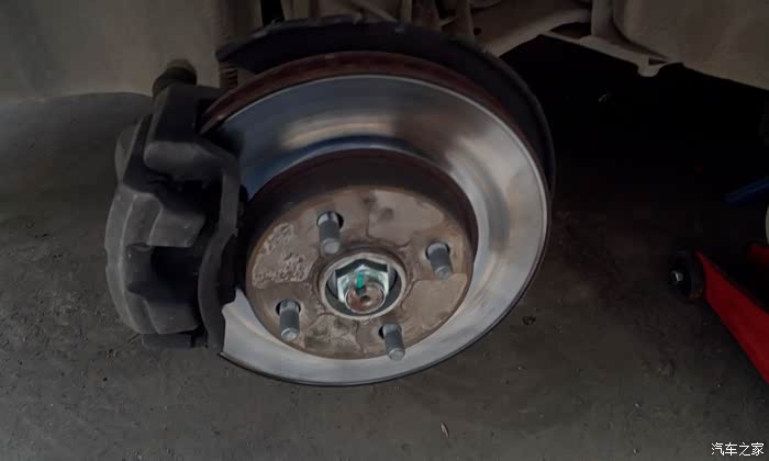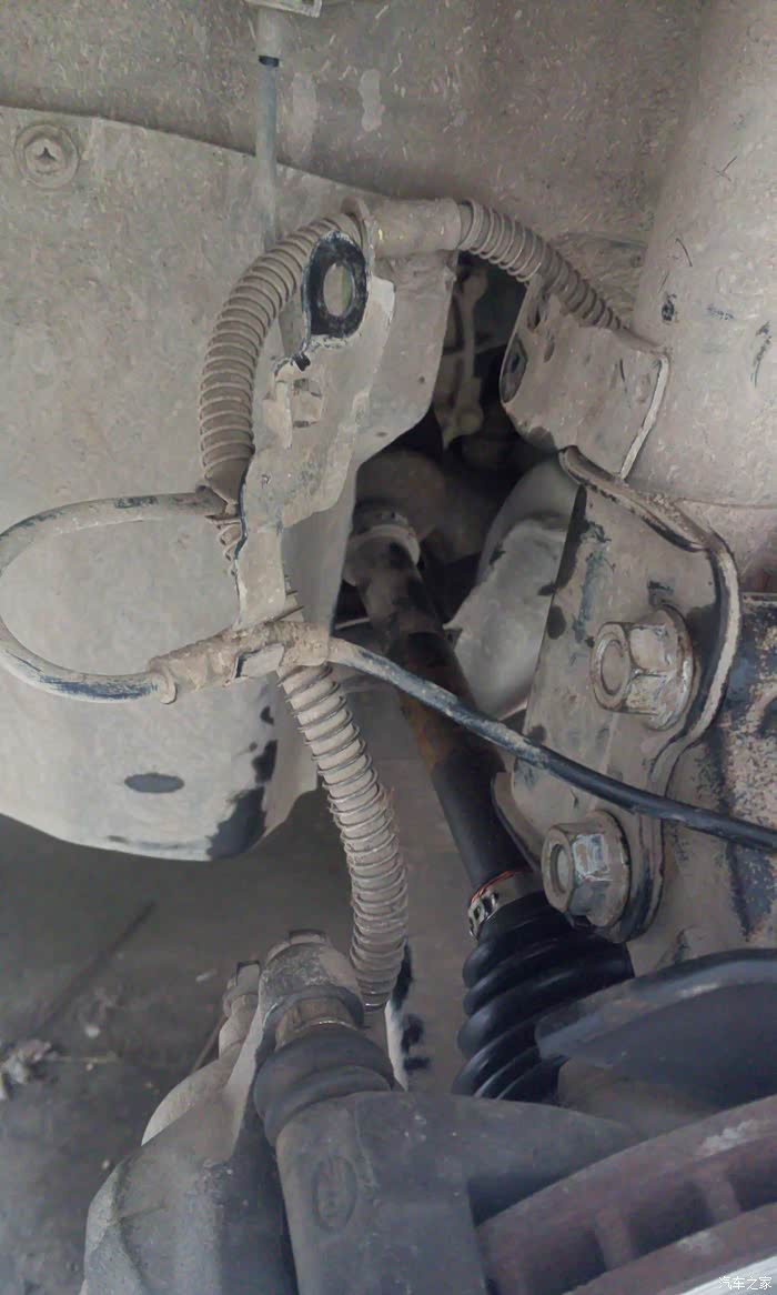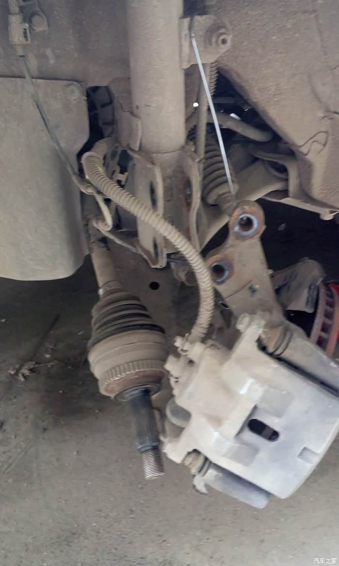 上述的拆完以后连同刹车盘一拔就跟外球笼分离了,接着用挂钩挂好刹车盘这一套,刹车软管ABS线不能生拉硬拽以免出不必要的问题