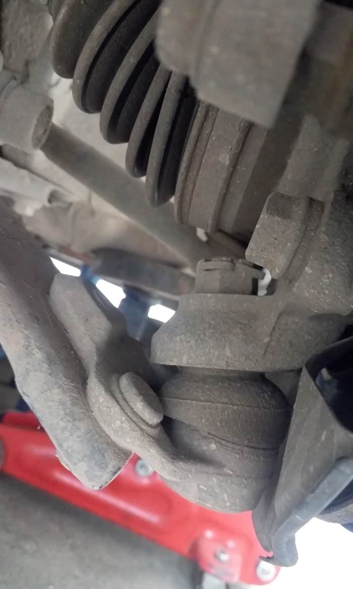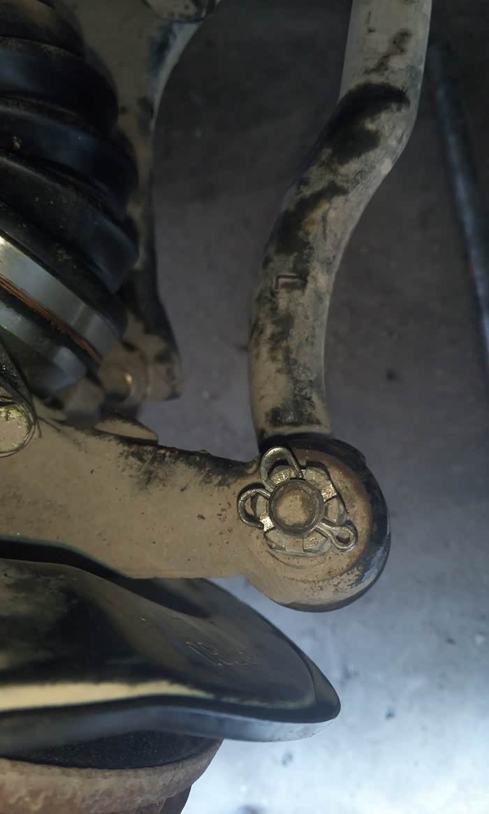 接下来拆方向机拉杆球头,球头由城堡螺丝加开口销固定着,先拆开口销