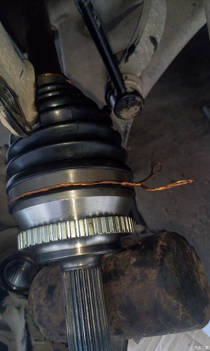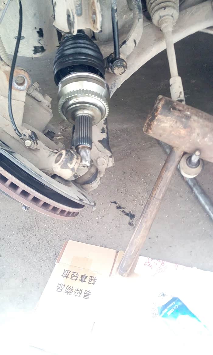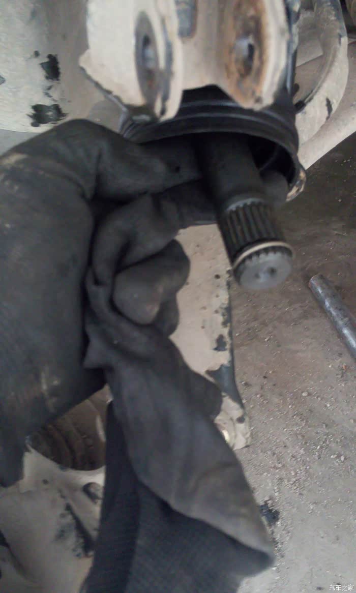 ,左手拿住传动轴右手用榔头敲球笼外边缘两下就拆下来了,学会的记得来交学费哦!