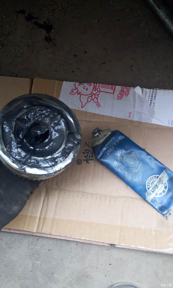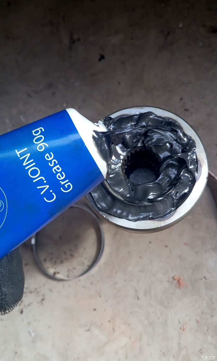 接下来球笼灌涂二硫化钼润滑脂,这一支涂了会剩下一点直接涂在防尘套里面