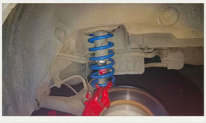 对比下原车弹簧,这个天之蓝高了15mm。一圈左右。这样才能恢复原车高度。