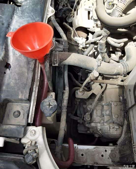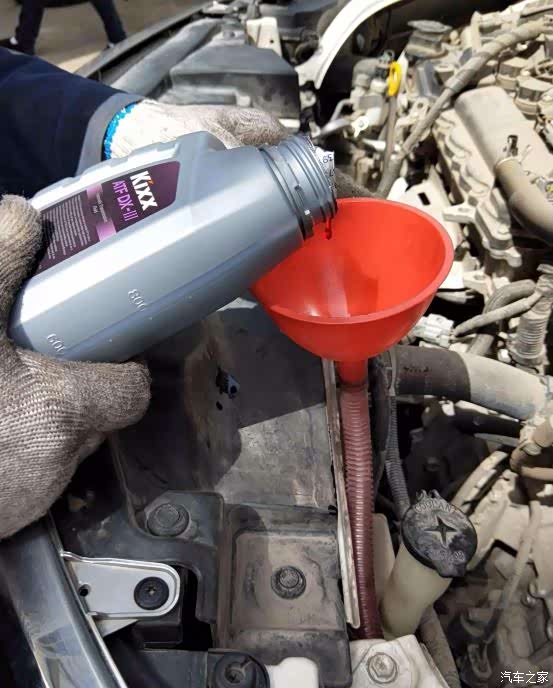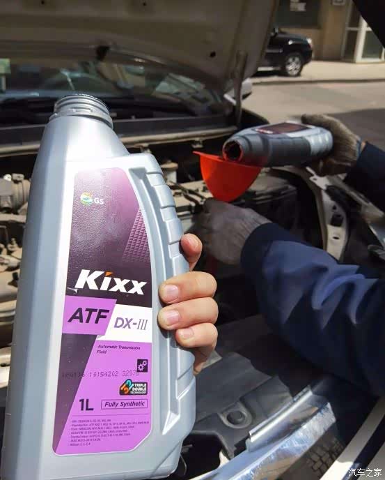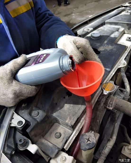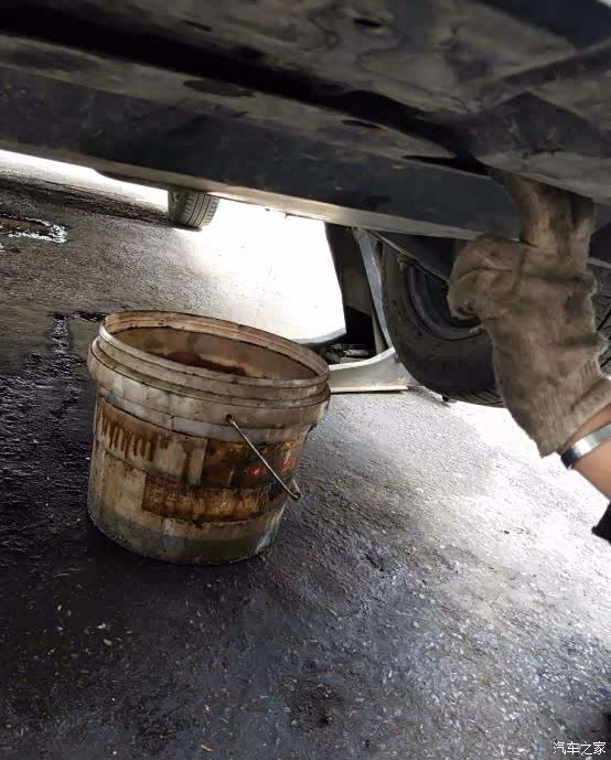 采用的是重力换油的方式,就是像换机油一样,让油自己靠重力的作用流淌下来,流出来的油黑乎乎的。其实这样的换油方式不是最理想的,因为靠重力有好多地方的油是流不下来的。
