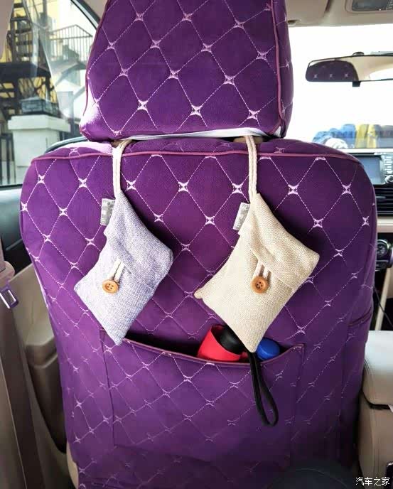 再来看一下我家小威的内饰吧,紫色的座套,跟小威增加点颜色。挂的两个小布袋是专门用来放手机或者其他小玩意的。