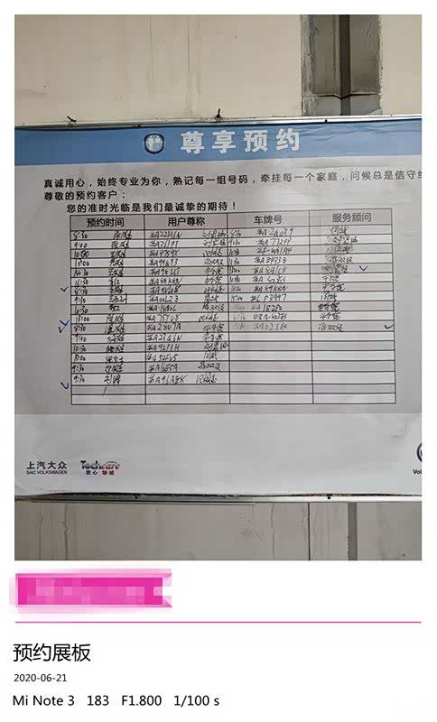 这是挂在外面的预约看板,哪些车主提前预约的,一目了然