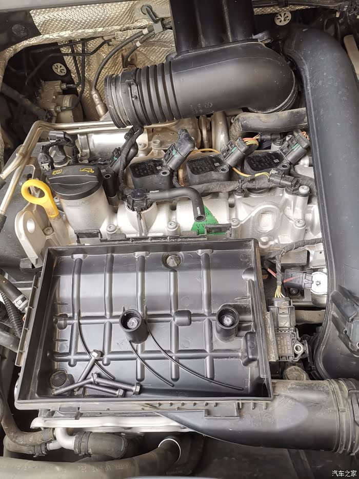 拆开空气盒,有人肯定说下面没拆怎么可以把盖子拿掉,这是因为看见的两颗螺丝我早就把它拆了,用胶堵住了。方便空气格吹灰。