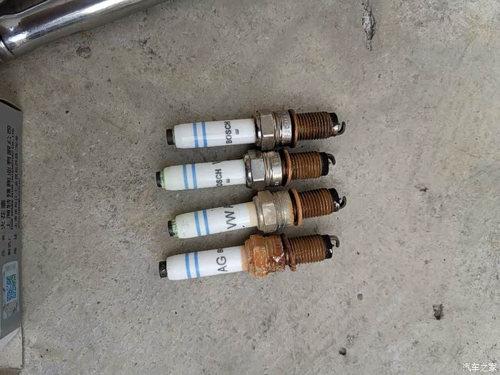 仔细看看是博士铂金的,不知道是单铂金还是双铂金,就不知道了。目测在跑个3万公里应该是没有问题。没有烧损。