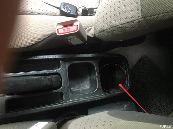 然后在图上位置,就在手刹后面的储物格里面,有个应该是10个的螺丝,用十字螺丝刀也能拧