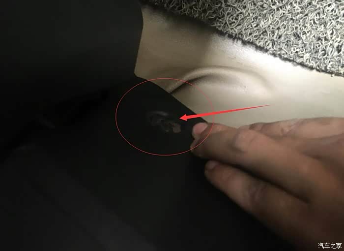 这个位置在主驾油门踏板旁边的侧面,拍的不是太清楚,有个子母扣,用十字改锥拧开,然后往外拔就行。副驾驶位置一样有一个,和主驾位置对称