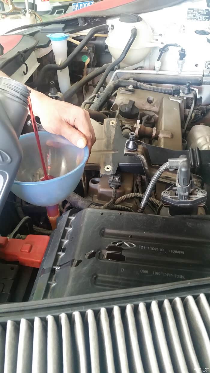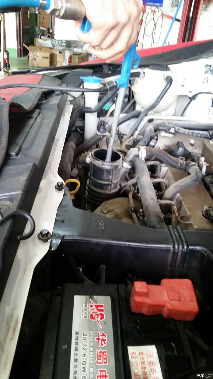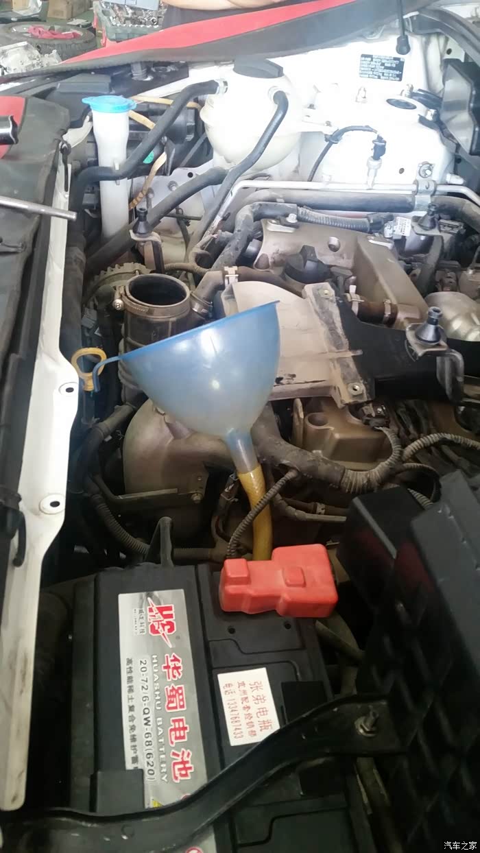 准备灌新油。原装的蓄电池在今年春节前一天“光荣下岗”了,本地店家推荐的华蜀电池500大洋一枚,没听说过,但临近春节别家都已关门回家没办法只有将就了,但愿也能用上3、4年。