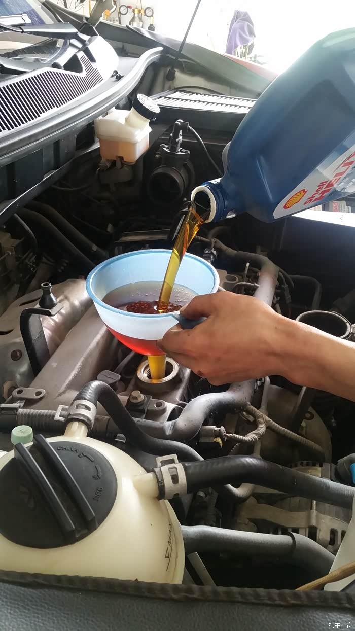 4升一瓶专用变速箱油已足够,因为是重力放油里面还有原装油放不完,且原装油质还蛮不错。