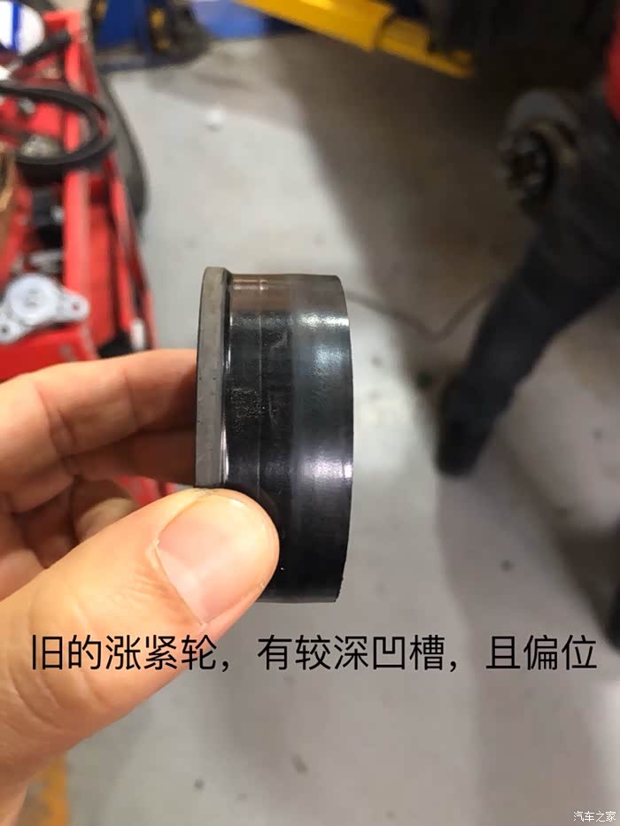旧涨紧轮的磨损凹槽,高速急加速皮带容易跳动,导致脱落