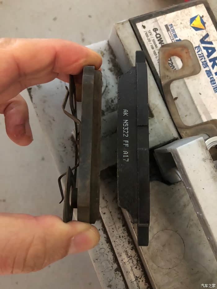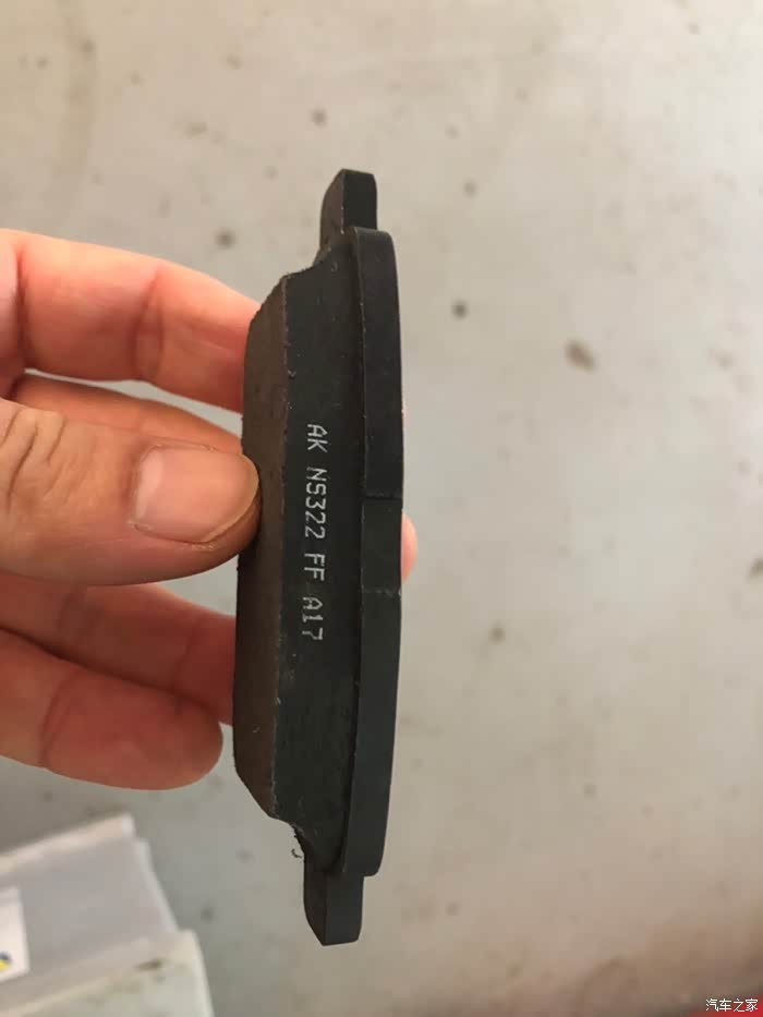 左为旧刹车片,右为新,其实还可以再跑,指南者原厂片非常耐磨