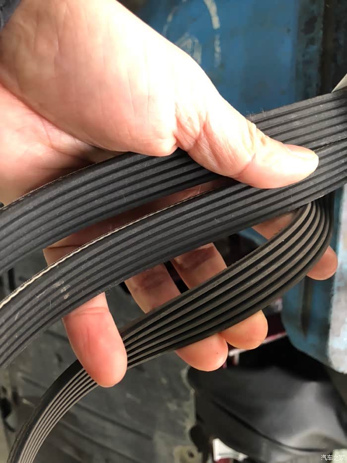 最右侧为旧皮带,其实皮带很完好,缺点是皮带背面是麻面的,对惰轮磨损较大,导致惰轮和涨紧轮出现了不同程度的凹槽,不过能跑13.5万公里已经很不错了