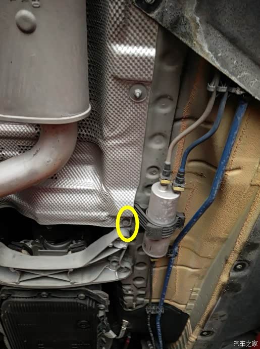 掰开铝箔防烫板后,还需要拧开这颗螺栓。其实图中的是新换上的曼牌WK515汽油滤。这款汽油滤很多宝马其他型号的车都通用。