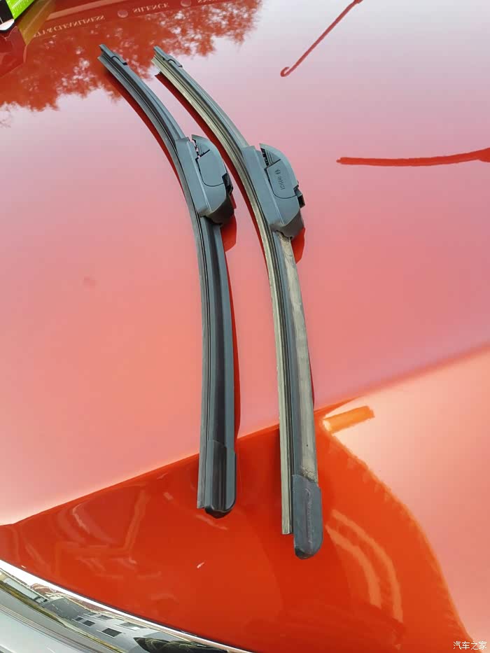 两年了,最近发现雨刮条总是刮不干净,喷了很多玻璃水也刮不干净。刮后玻璃上总是有残留痕迹,污渍点也依旧存在。因此决定是该换雨刮条了。
