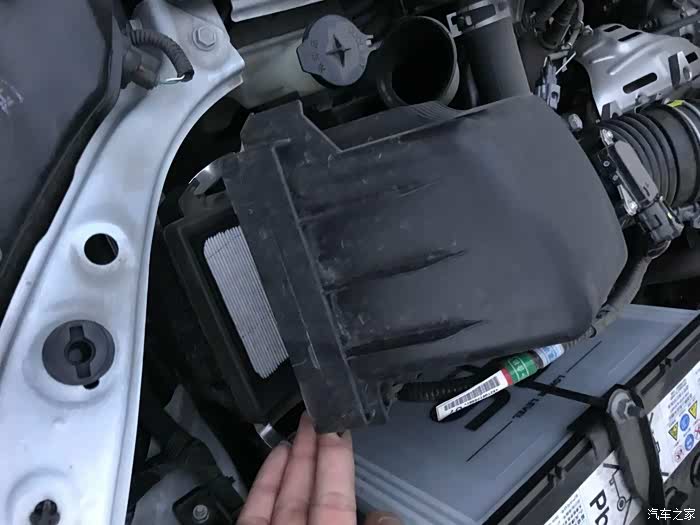 提起空气格上半部便可将空气滤芯拿出,检查清洁下
