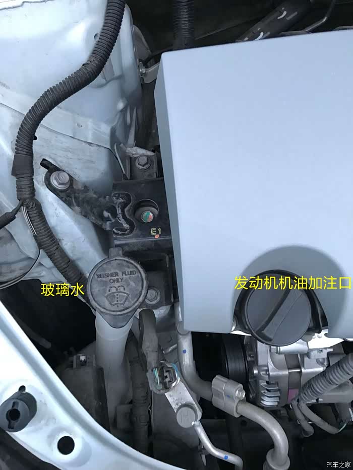 这里是玻璃水加注口和机油加注口