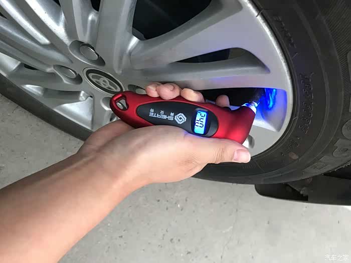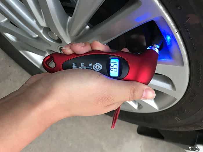 网上买个胎压监测仪,对于胎压检查就很简单了,只需将胎压检测仪插入轮胎气嘴处,上面便会显示胎压指,2.4正常
