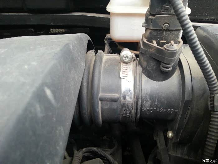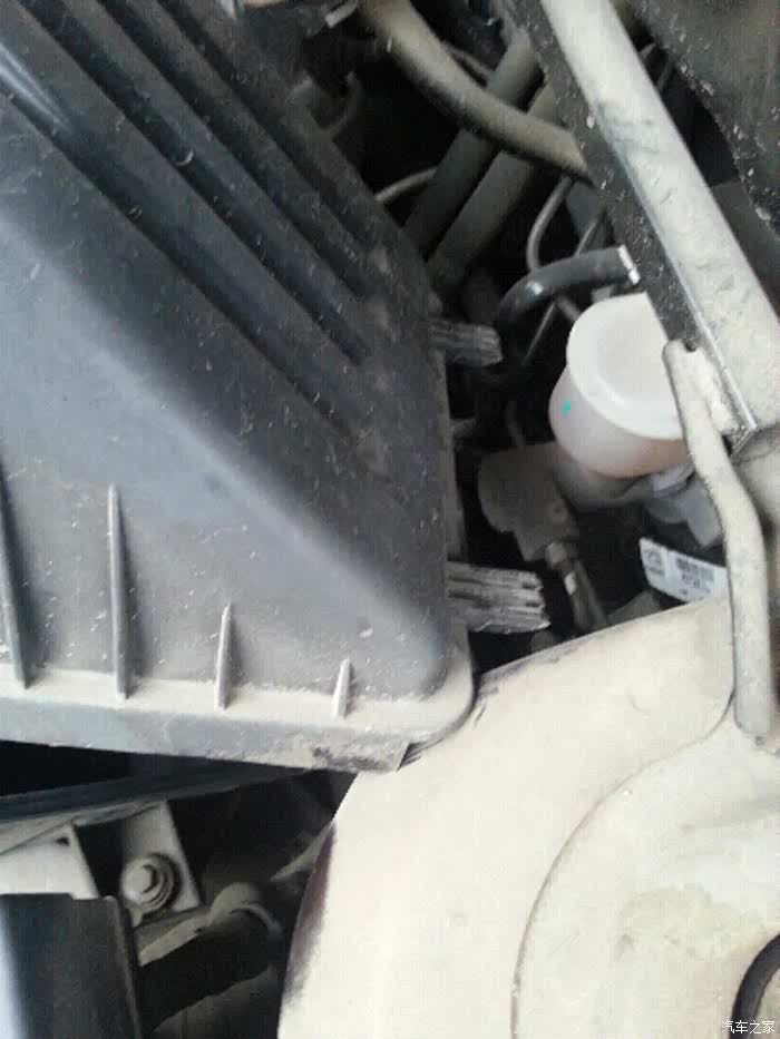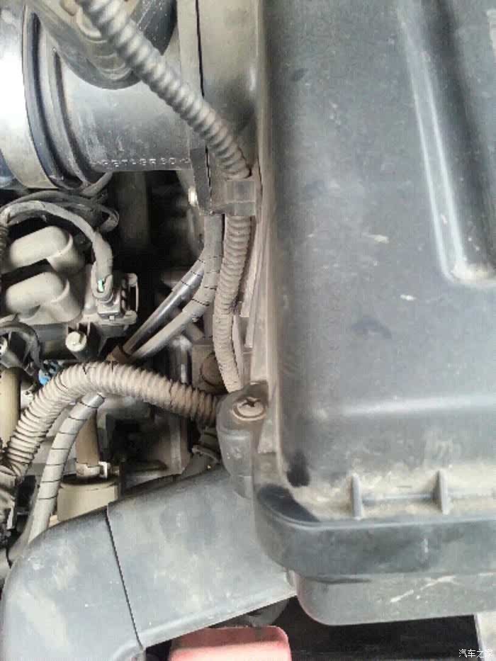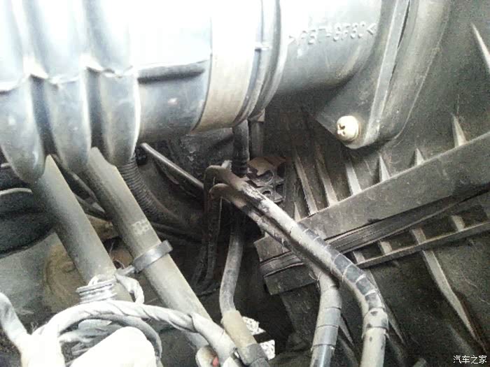 这两个管子从卡子里退出,以便打开空滤盖子。上面是油管,下面是碳罐的管子,通到碳罐电磁阀的