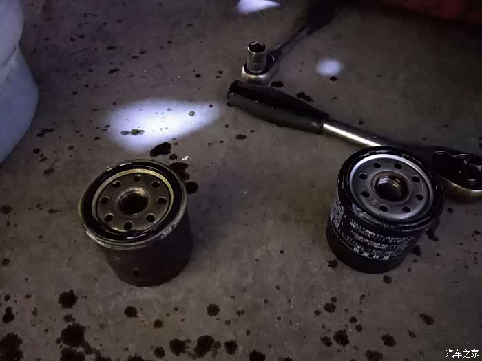 换下来的油滤,这个的好坏我就不会看了,反正一般我保养的项目就市传说的“机油三滤”。哈哈,话说把油滤拧下来还挺费劲的。