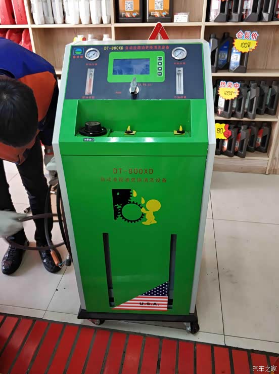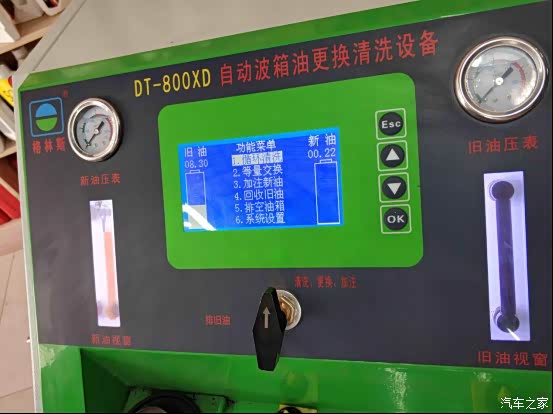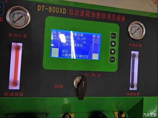 据店里的师傅介绍,更换变速箱油油两种更换方式,一种是手动更换,就是靠重力把旧油自动流出来;另一种是用变速箱油循环机对冲的方式更换。相对来说用循环机换的更彻底干净,循环机换油是车在启动状态下更换变速箱油,这时候油在内部流动,会带出变速箱里的脏东西,一般是重力换油的2倍就是11升左右,循环机换油法干净彻底。手动的方式会油不少残留的旧油,带不走变速器内的油泥,脏污。不过用机器换的话价格会贵三百块钱,而且要比手动换多需要一些变速箱油液。