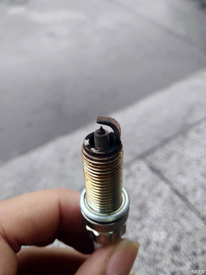 看看火花塞,燃烧情况还可以,有中等程度的积碳。