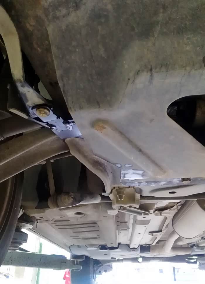 图片中央带锈的疤,是今年春节下雪天侧滑下路,给护板留下的最新伤痕。