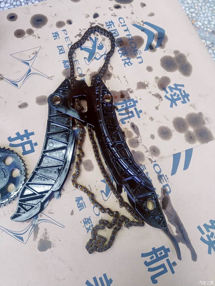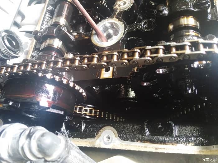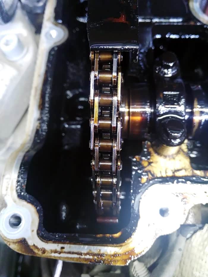 另一边还在继续拆东西。正时链条的顶板下来了,好好的,没断哦!