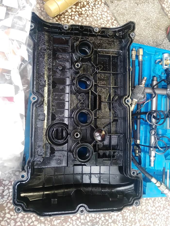 清洁气门室盖,我亲自把密封垫擦干净的。