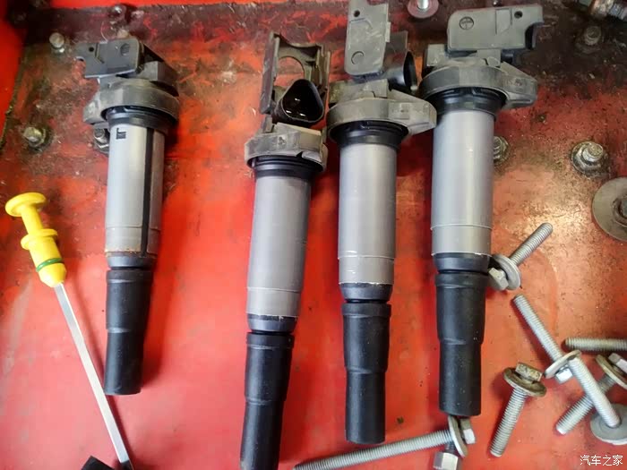 从左往右,分别是四三二一缸,能明显看出一二两个缸烧机油较严重。