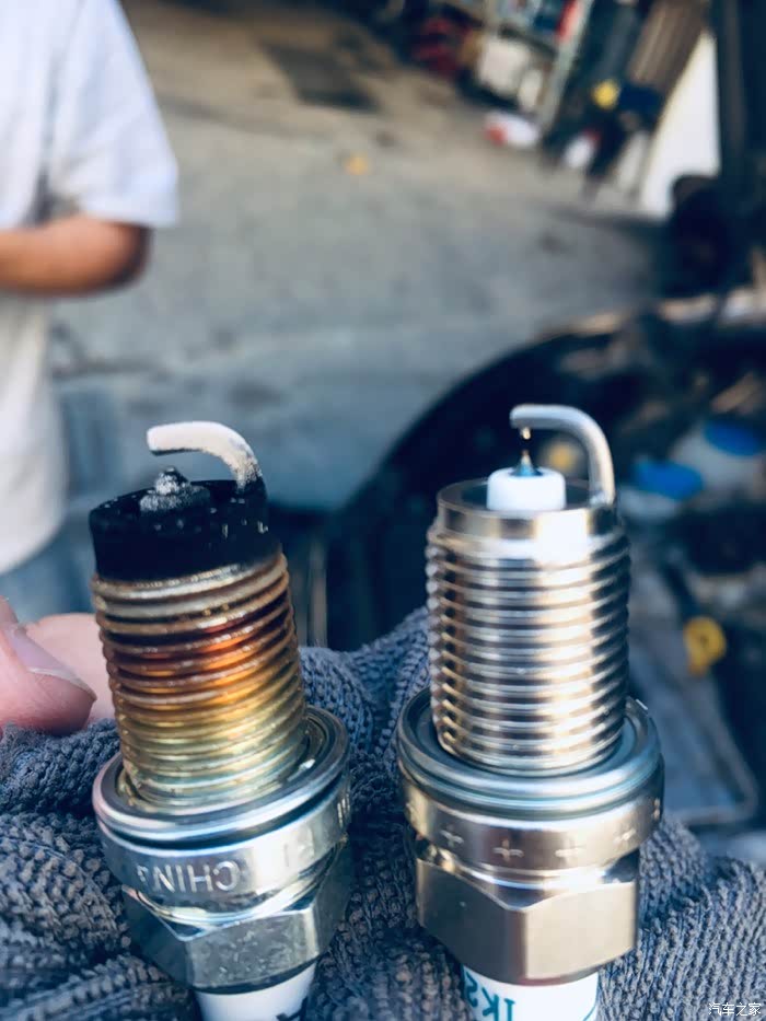 原车的火花塞是铂金的,新,旧对比一下,证明应该换了的,
