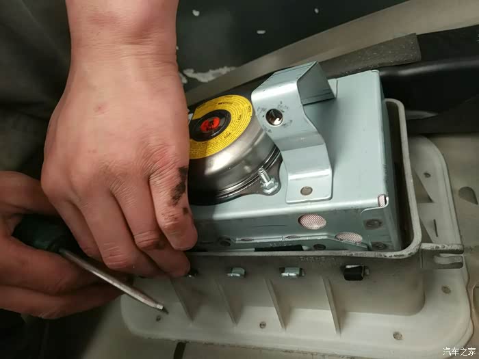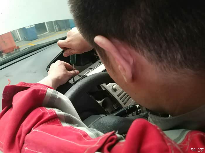 这个师傅在拆卸副气囊的固定螺丝。