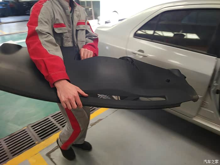 仪表台上盖,已经拆掉了。两个师傅抬着