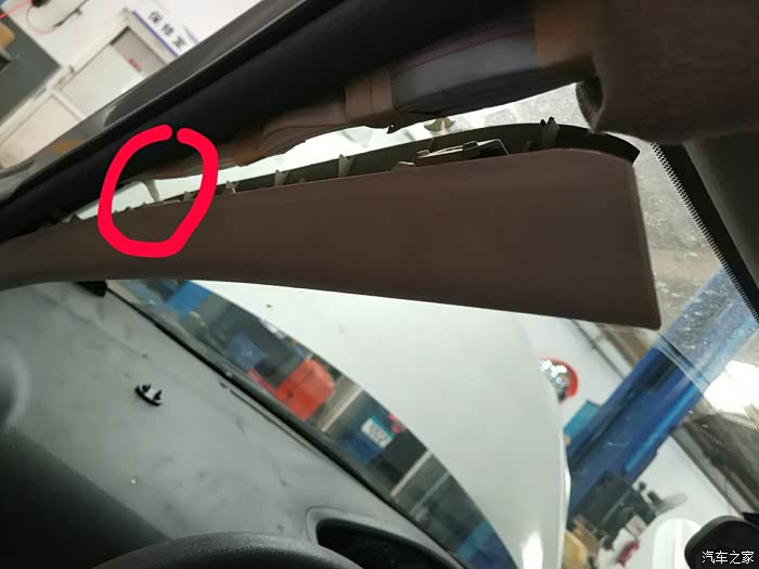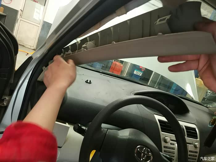 安装A柱饰板。里面有个卡扣特别难装。