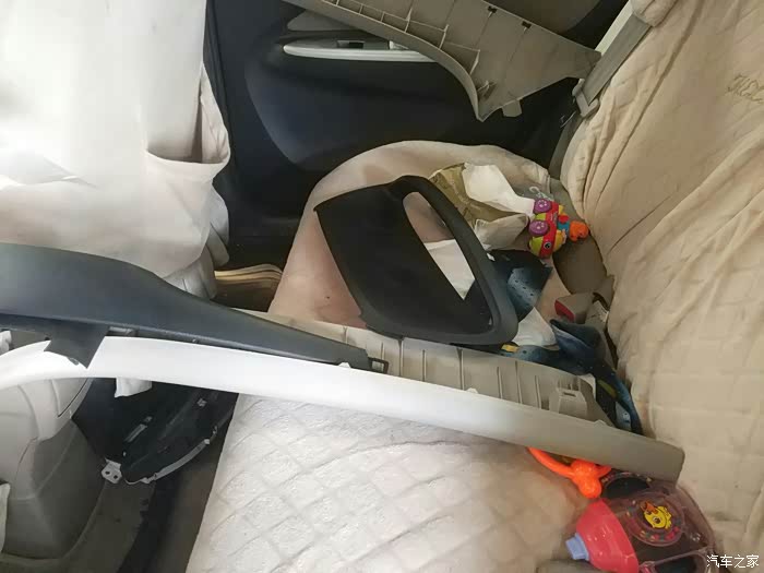 拆的七零八落。各种饰板仪表都拆下来放在后座上。