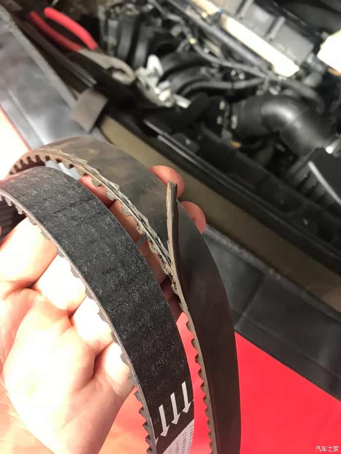 9万公里的保养是一次相对内容比较多的保养,这次需要更换机油机滤空滤空调滤汽油滤火花塞,更换制动液防冻液助力油变速箱,清洗各种积碳等等。还有一个很重要的内容那就是更换正时套件,也不确定之前是否更换过,这个就只有拆开来具体检查才知道的,这个拆开一看,很庆幸拆开检查了一下,发现正时皮带已经老化开裂,在继续使用下去就不知道什么时候会发生故障。。
