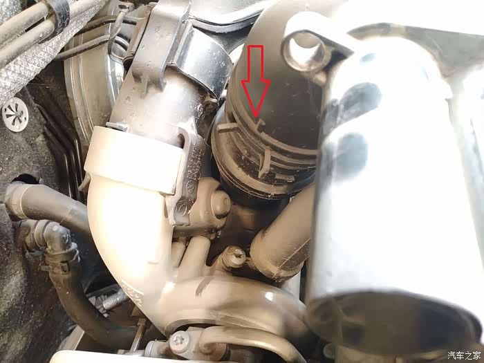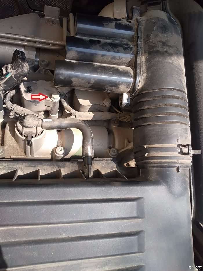 在拔掉这根废气循环的管子,然后把空滤壳往上一提,就可以把整个空滤拿下来了,拆下来之后,空滤壳下面有两个螺丝,拆掉可以清理,更换里面的空滤芯