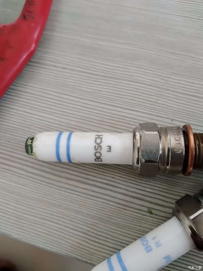 可以看到,原车品牌也是博世,火花塞头部是专用硅脂,作用好像是防止点火线圈氧化受潮的,买来的火花塞没有,我把原车的又涂到新火花塞上了