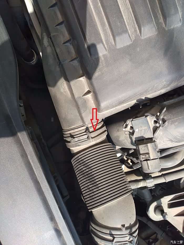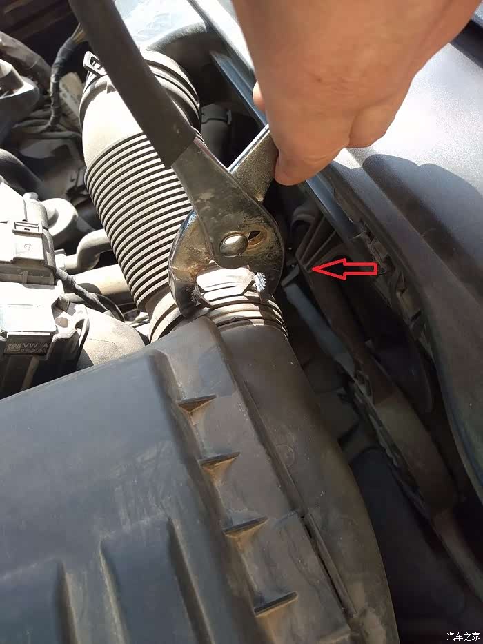 拆掉空滤上的这个卡子,红色箭头这里