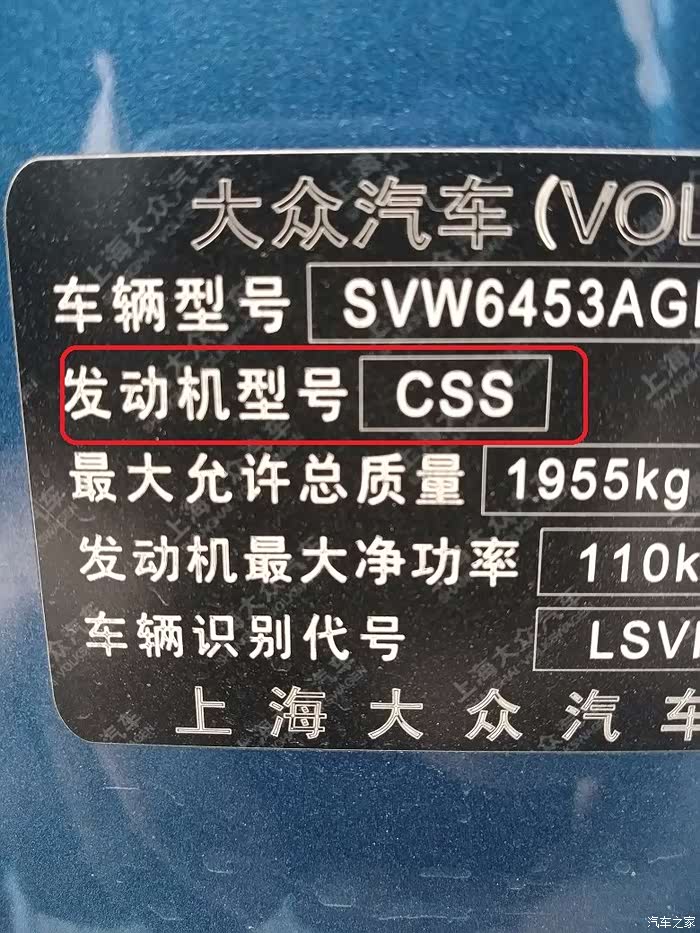 1.4T发动机型号CSS 铭牌在副驾边框B柱这里