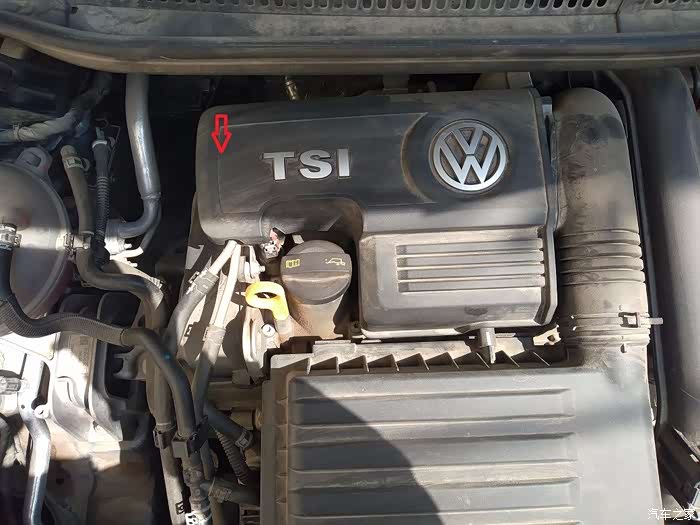 发动机小盖,扳住箭头处往上一提,就拆下来了