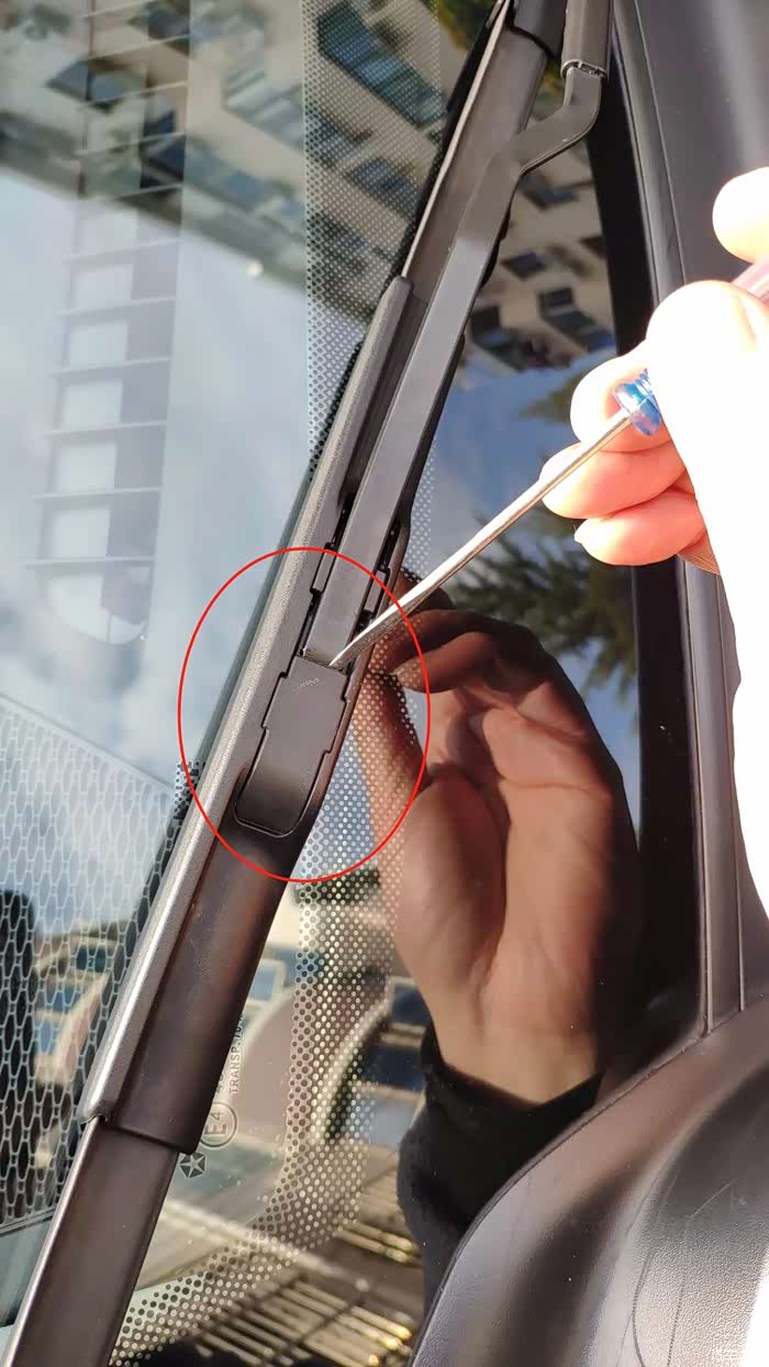 用一字掰住背面的卡口,雨刮器前后晃动一下就脱落出来了.记得在车玻璃上放一个海绵或布,防止自己太兴奋雨刷下半部弹到玻璃上.
