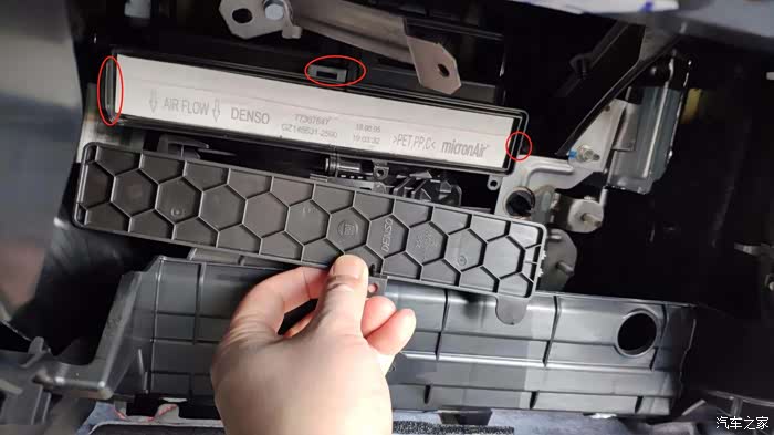 就能看到今天的主角,空调滤芯.抽出来更换一个新的滤芯就行了.