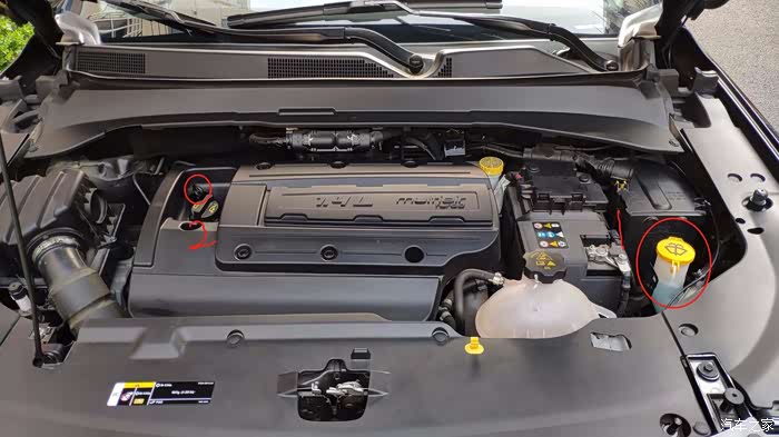 4.加玻璃水,看机油尺.