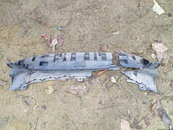 前阵子夜里行车,下着蒙蒙细雨,在泥泞路视野不怎么好,不小心托底了,导致水箱下护板被顶破。