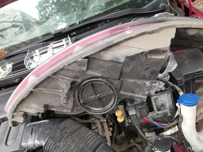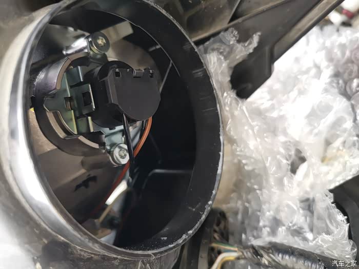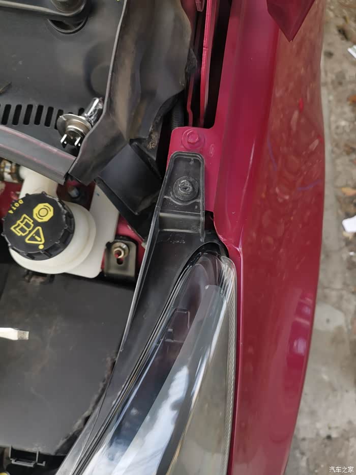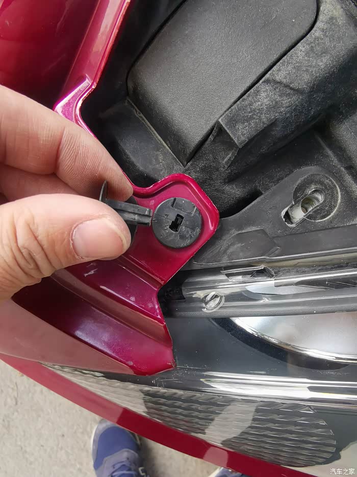 大灯靠近玻璃位置的螺丝接口旁边还有一个卡扣,大家拿的时候注意垂直往上提,不要硬掰容易扳断。