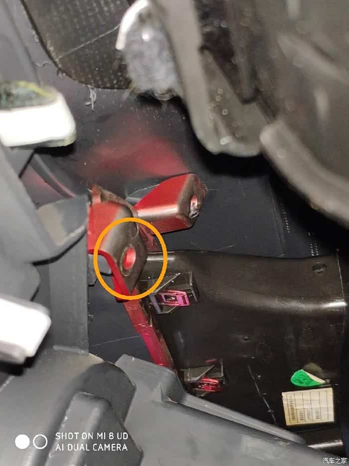 拆掉手套箱可以看到这个位置的螺丝,拧下来。